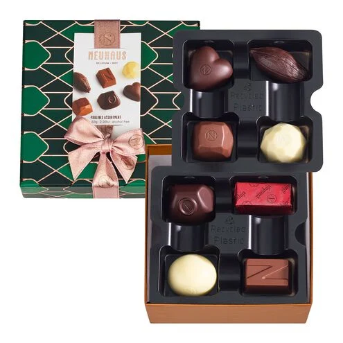 The Small Christmas Gift Box (83 g) contains a carefully selected variety of 8 of our most timeless Neuhaus pralines picked with great care by our Maîtres Chocolatiers.