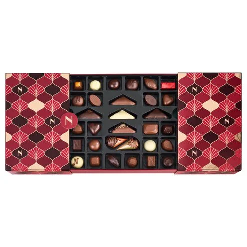 Wrapped in a festive red-and-gold box with an elegant bow, this Chrismas gift box makes the perfect gift for chocolate lovers.