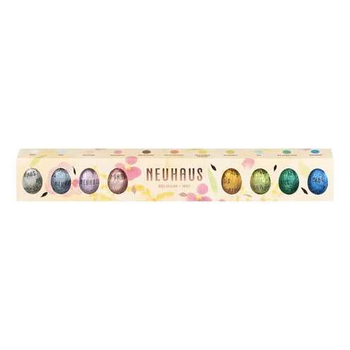 The Easter Eggs Long Box (120 g) contains a wide flavour range of 11 Neuhaus chocolate Easter eggs. An introductory box to our Easter egg assortment with flavours and textures to delight all chocolate enthusiasts.