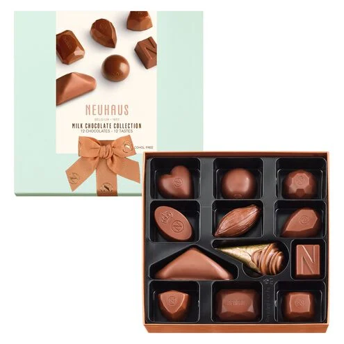 Une sélection de 12 pralines Neuhaus, fourrées à la main de crème fraîche ou de ganache. Un coffret contemporain, garni et emballé avec le plus grand soin.