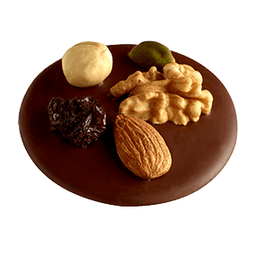 Disque de chocolat noir et fruits secs.