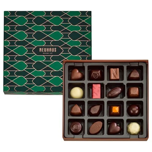 Le Coffret Cadeau Noël Moyen (189 g) contient une variété soigneusement sélectionnée de 15 pralines Neuhaus intemporelles choisies avec soin par nos Maîtres Chocolatiers, qui vous surprendront couche après couche.