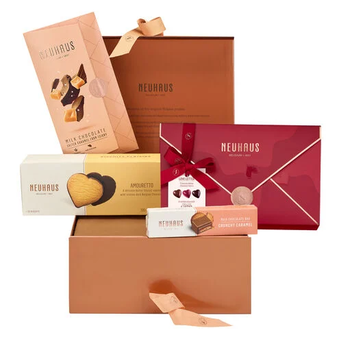 Cet élégant coffret se compose de : une Love Letter Box Édition Limitée, des Biscuits Plaisirs - Amouretto, une tablette chocolat au lait Caramel Beurre Salé et une barre de chocolat au caramel croustillant.