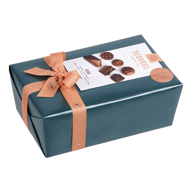 Ontdek onze ballotin Neuhaus pralines met intense donkere chocolade: een doos vol pralines gevuld met praliné, ganache en gianduja.