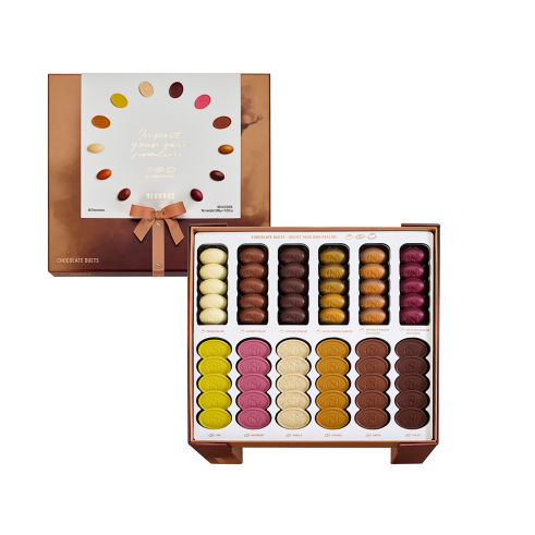 Met de Chocolate Duets stel je je eigen praline samen. Match één van de zes rijkgevulde toppings met één van de zes verfijnde chocoladebodems. De Chocolate Duets Schuifdoos (203G) bestaat uit 36 chocolaatjes om te mixen & matchen tot 36 combinaties.