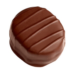 A crisp disc of pure chocolate adorned with the finest almonds and dried fruit