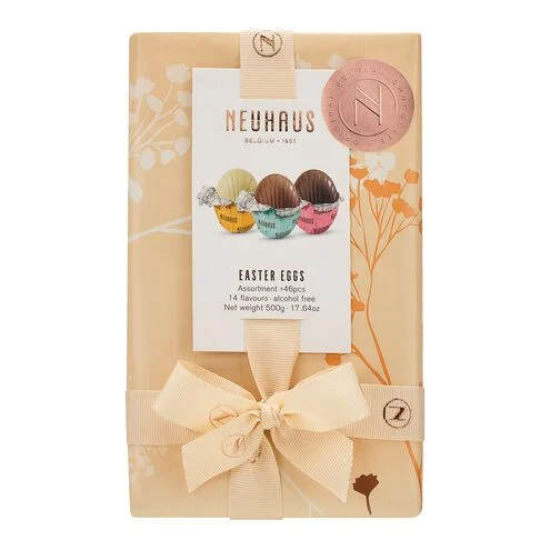 The Easter Eggs ballotin (500 g) contains +/- 47 Neuhaus chocolate Easter eggs, including a selection of praliné, ganache and gianduja fillings. Wrapped in colourful paper with a floral print and an elegant bow, this ballotin makes the perfect gift for chocolate lovers.
