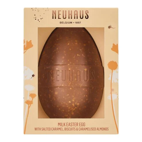 The Gourmand Easter Egg Milk (200 g) is a hollow Easter egg crafted with smooth, creamy milk chocolate and filled with delightful inclusions. Savour the velvety richness of milk chocolate, perfectly balanced with the bold flavour of salted caramel, the satisfying crunch of caramelised almond pieces, and the delicate crisp of butter biscuit pieces.