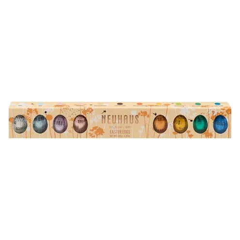 La Réglette Œufs de Pâques (120 g) contient un large assortiment de 11 œufs de Pâques Neuhaus en chocolat. Un coffret d'introduction à notre assortiment d'œufs de Pâques comprenant diverses saveurs et textures, parfait pour plaire à tous les amateurs de chocolat.