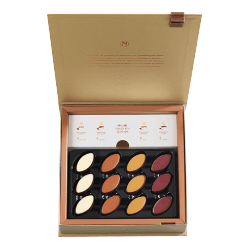 Champagne is net als chocolade hét product van echt vakmanschap en een heerlijk metgezel voor pralines. Het inspireerde onze Maîtres Chocolatiers om vier meerlaagse pralines te maken die perfect passen bij bepaalde types champagne.